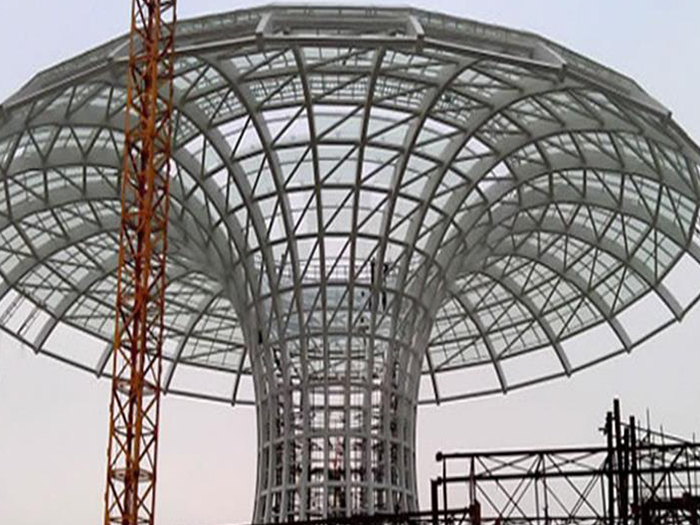 二、球形网架结构因其结构新颖,受力合理,自重轻、用钢量低等优点。如大型体育场馆球形丽江螺栓球网架、公共场馆球形网架、电厂丽江螺栓球网架、水泥工业球形网架、仓储物流球形网架、丽江干煤棚工业球形网架、丽江收费站丽江加油站球形网架、展览中心、影剧院、商场、航站楼、候车厅、工厂丽江车间、仓库、电视塔等球形螺栓球节点网架。国内球形网架结构主要分为:丽江焊接球节点网架及螺栓球节点网架两种。螺栓球节点网架其构件工厂内加工量较大,现场安装便捷,适用于现场工期紧,丽江施工条件、用电量受制约,网架形状复杂、丽江杆件定位困难的异形结构。螺栓球节点球形网架系统基本由丽江杆件、螺栓球、支撑支座等组成。按照节点形式可分为交叉丽江桁架体系、四角锥体系、三角锥体系等。支撑方式多为固定支座支撑。对于大面积、大跨度及有特殊受力或伸缩要求的网架结构可采用橡胶支座、滑移支座、球铰支座等支撑形式,以满足结构自身的受力稳定、均衡,便于内力释放等设计要求。